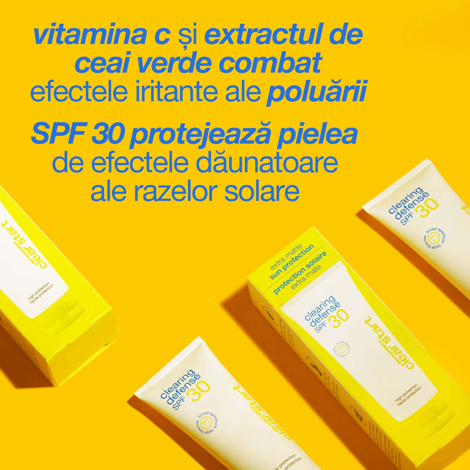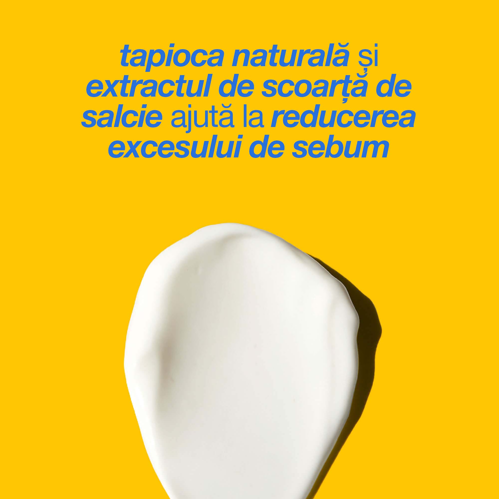 Crema hidratantă cu SPF reduce aspectul uleios al pielii și ajută la protejarea pielii predispuse la erupții provocate de stresul oxidativ. Formula sa ultra-ușoară oferă un finisaj mat de lungă durată, fără a congestiona porii. Tehnologia patentată TT acționează asupra microbiomului natural al pielii, în timp ce tapioca naturală ajută la estomparea aspectului lucios provocat de excesul de sebum. Extractul antioxidant de scoarță de salcie, extractul de ceai verde și vitamina C combat efectele iritante ale poluării asupra pielii predispuse la erupții. Crema solară cu spectru larg protejează împotriva razelor UV, care pot cauza apariția unui aspect neuniform al nuanței pielii.