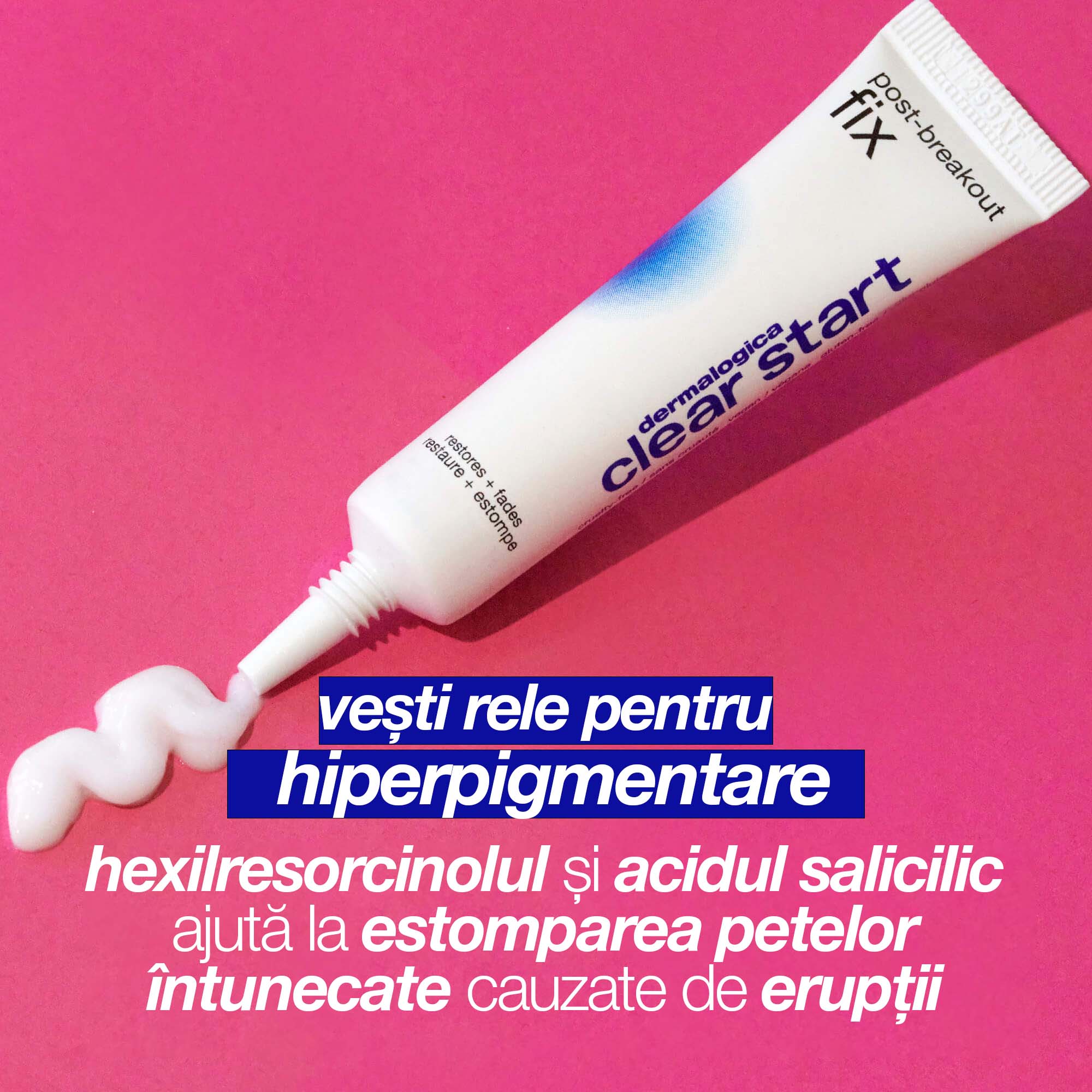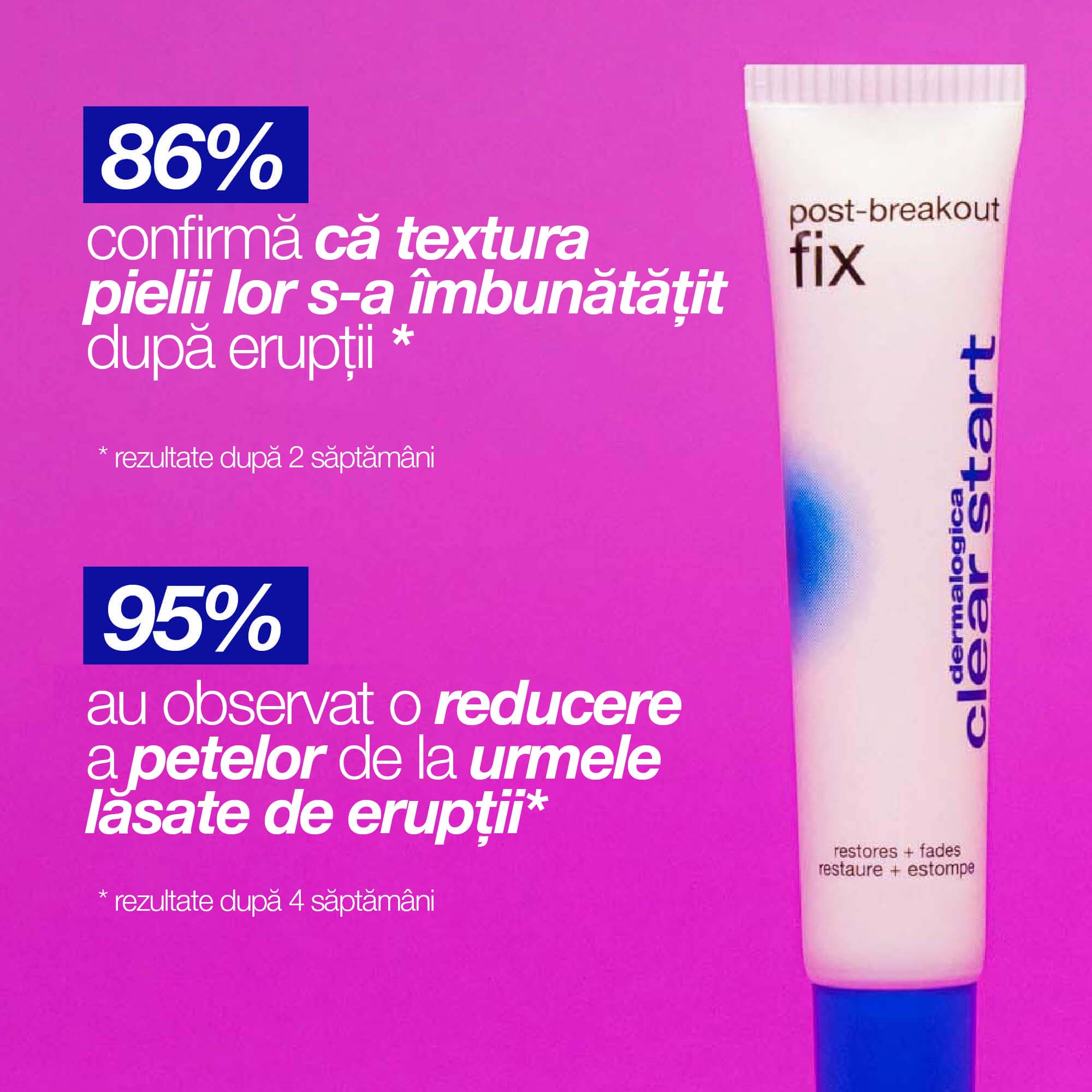Acesta este un reminder să nu îți mai spargi coșurile... DAR înțelegem - uneori nu te poți abține. Post-Breakout Fix ajută la estomparea hiperpigmentării (aka pete roșii sau închise la culoare) pe care extragerea coșurilor o lasă în urmă. Poate fi folosit pe oricare dintre semnele încăpățânate, atât pe cele noi, cât și pe cele mai vechi.